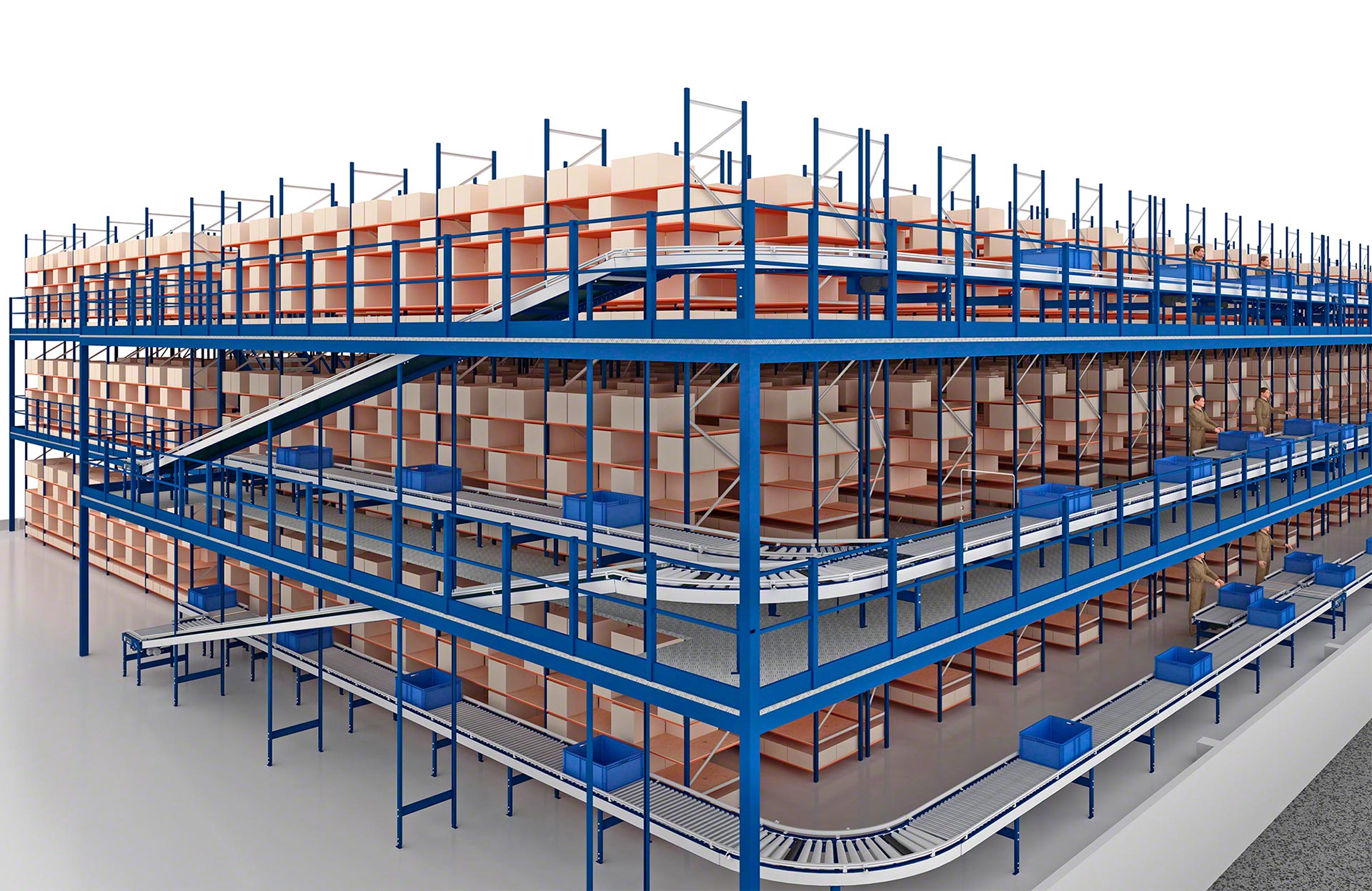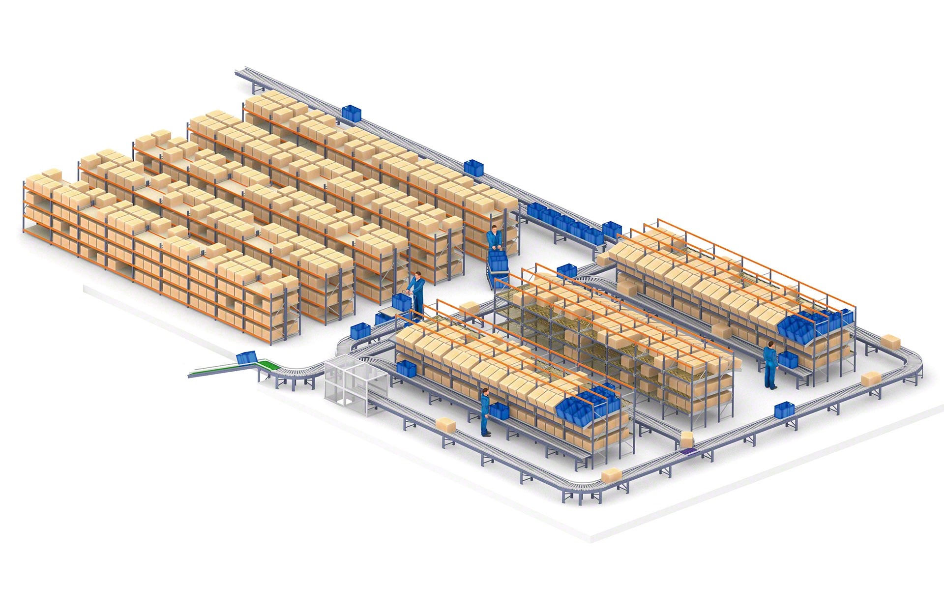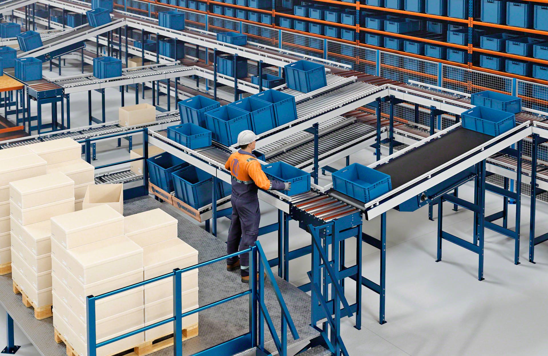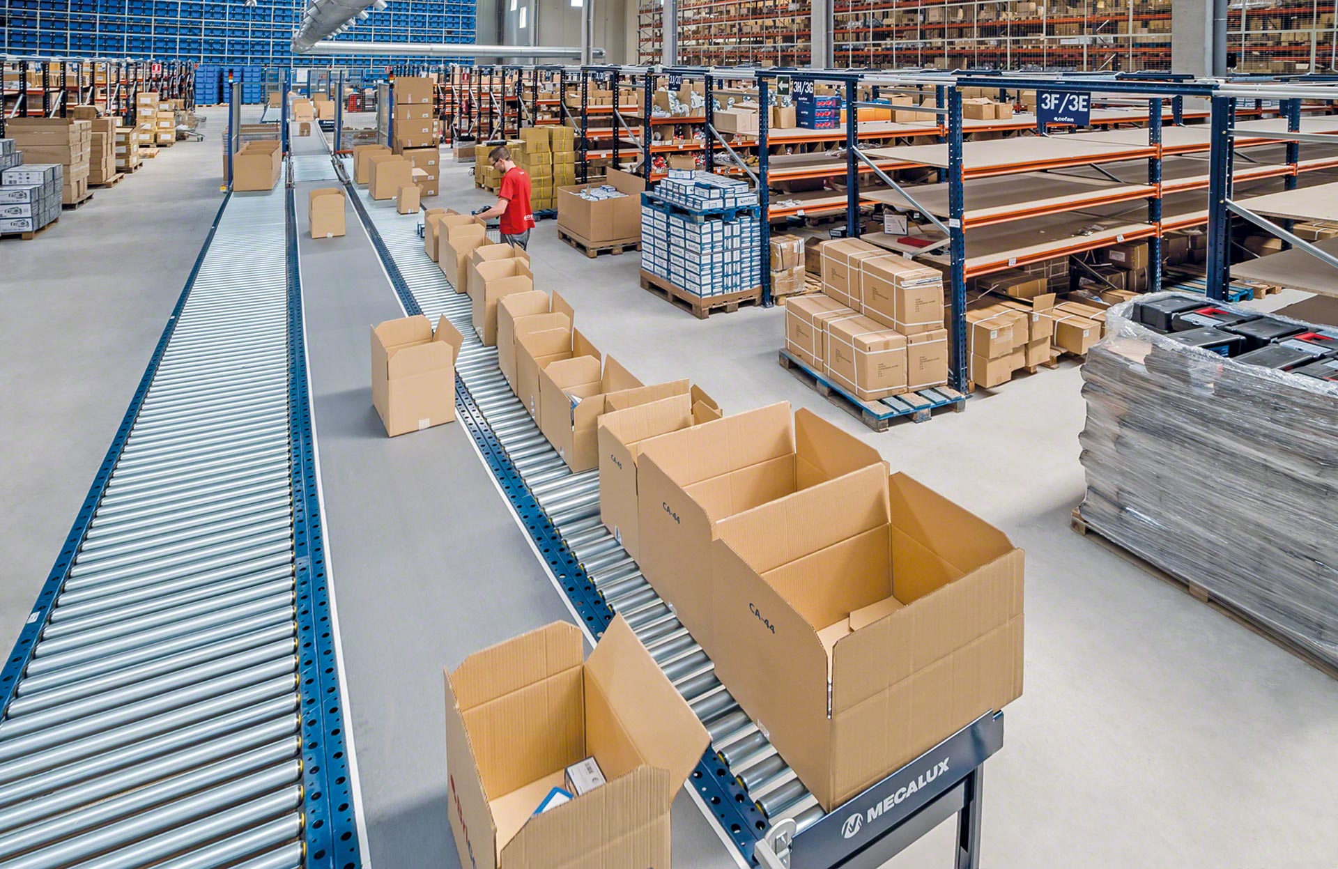 „Mecalux“ siūlo keletą kartoninių dėžių tvarkymo sistemų variantų, įskaitant ritininius, juostinius ir mišrius ritininius / dantytus juostinius dėžių transportavimo konvejerius. Ritininių dėžių transportavimo konvejerių atveju krovinius gabena ant veleno besisukantys metaliniai cilindrai, kuriuos suka variklis arba gravitacijos jėga. Tuo tarpu juostiniai konvejeriai gabena dėžes ir kitus mažus krovinius ant ištisos guminės arba plastikinės juostos, besisukančios tarp dviejų variklinių būgnų, esančių konstrukcijos galuose. Galiausiai, mišrieji konvejeriai – skersinio transportavimo prietaisai su 90° kampu išdėstytais ritinėliais ir juostomis – keičia transportuojamų vienetinių krovinių kryptį arba padėtį.