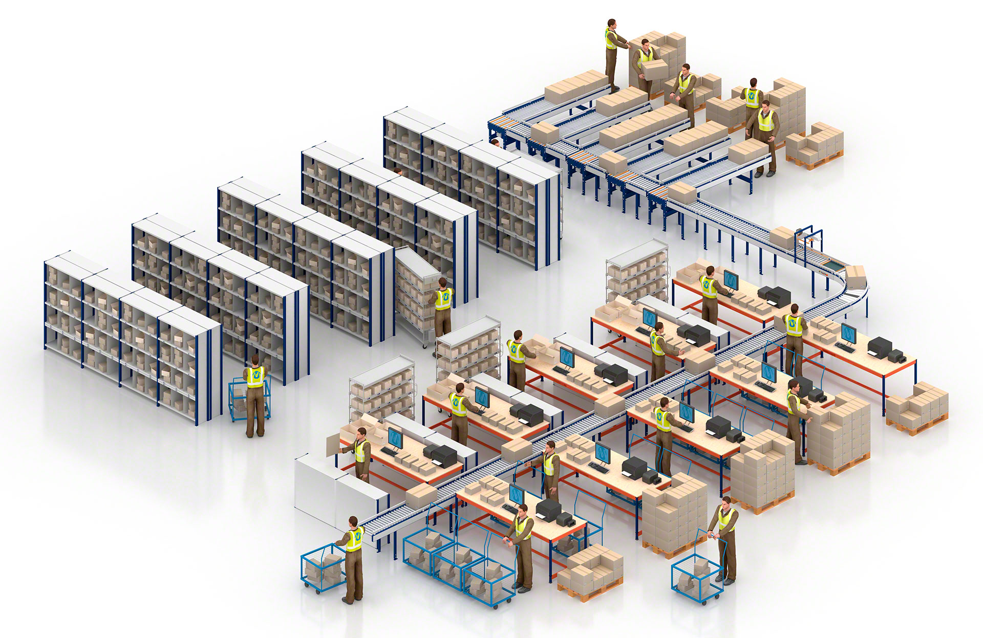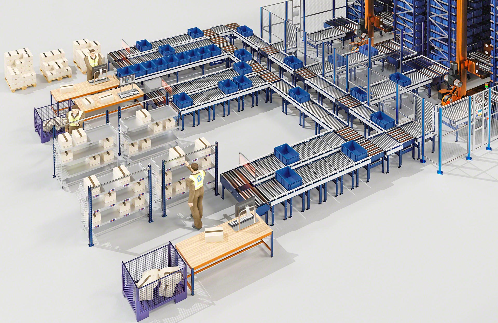 - Veikia ergonomiškai: darbuotojai, naudodami smulkių krovinių tvarkymo sistemas, patogiau atlieka užduotis, pvz., komplektuoja užsakymus.