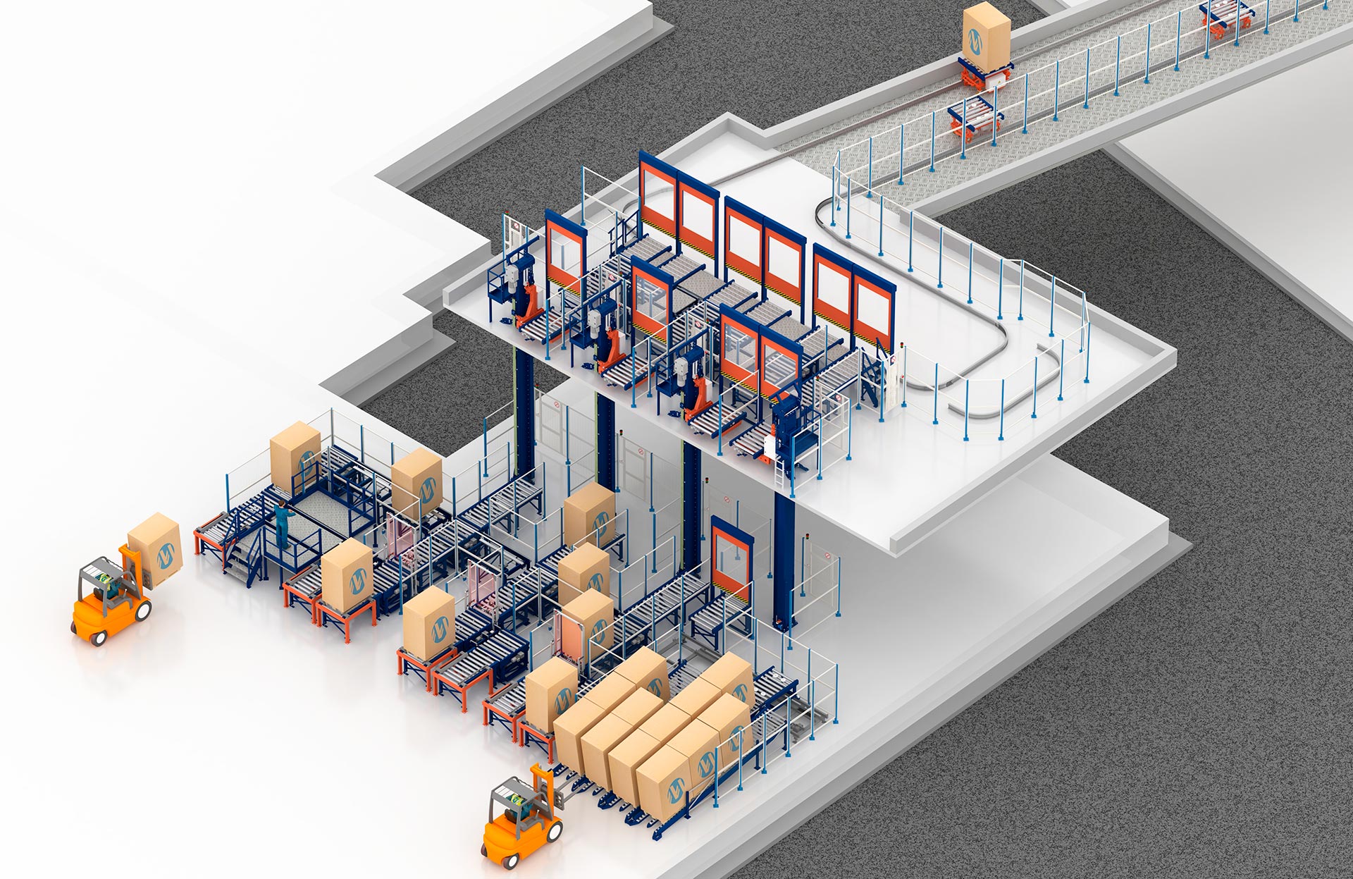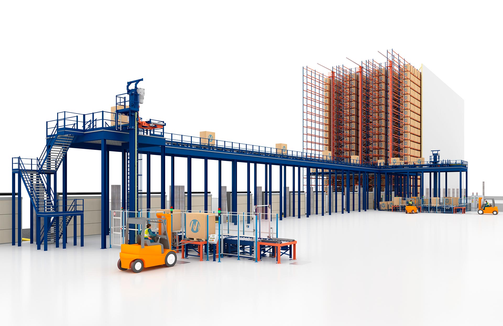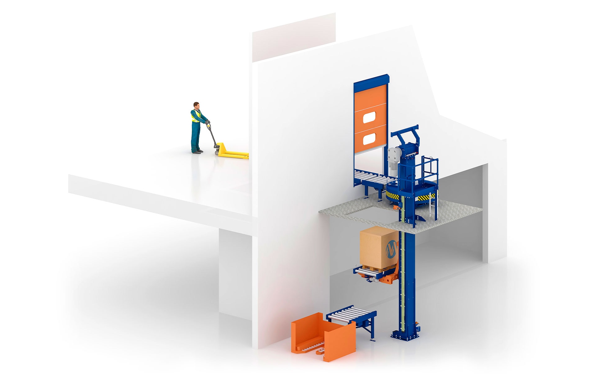 Vertikalioji transportavimo sistema, automatizuojanti padėklų pakėlimą ir nuleidimą, leidžianti įveikti aukščio skirtumus ir optimizuoti vidinį prekių srautą.