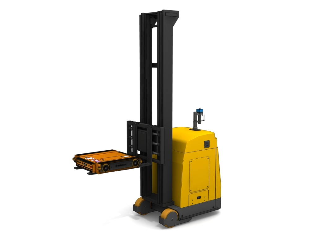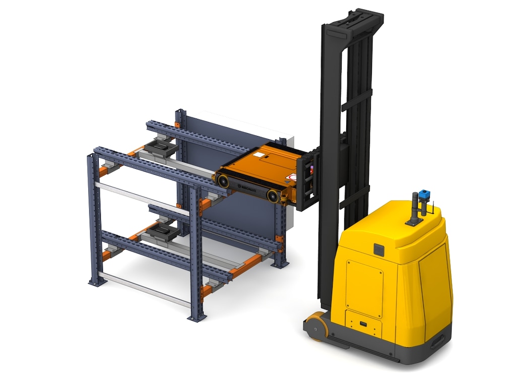 Through this integration, Easy WMS coordinates tasks and optimises work sequences for fork-equipped AGVs or AMRs. These machines handle all Pallet Shuttle system operations: