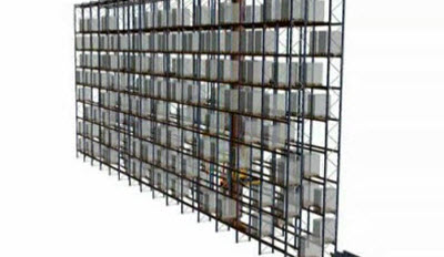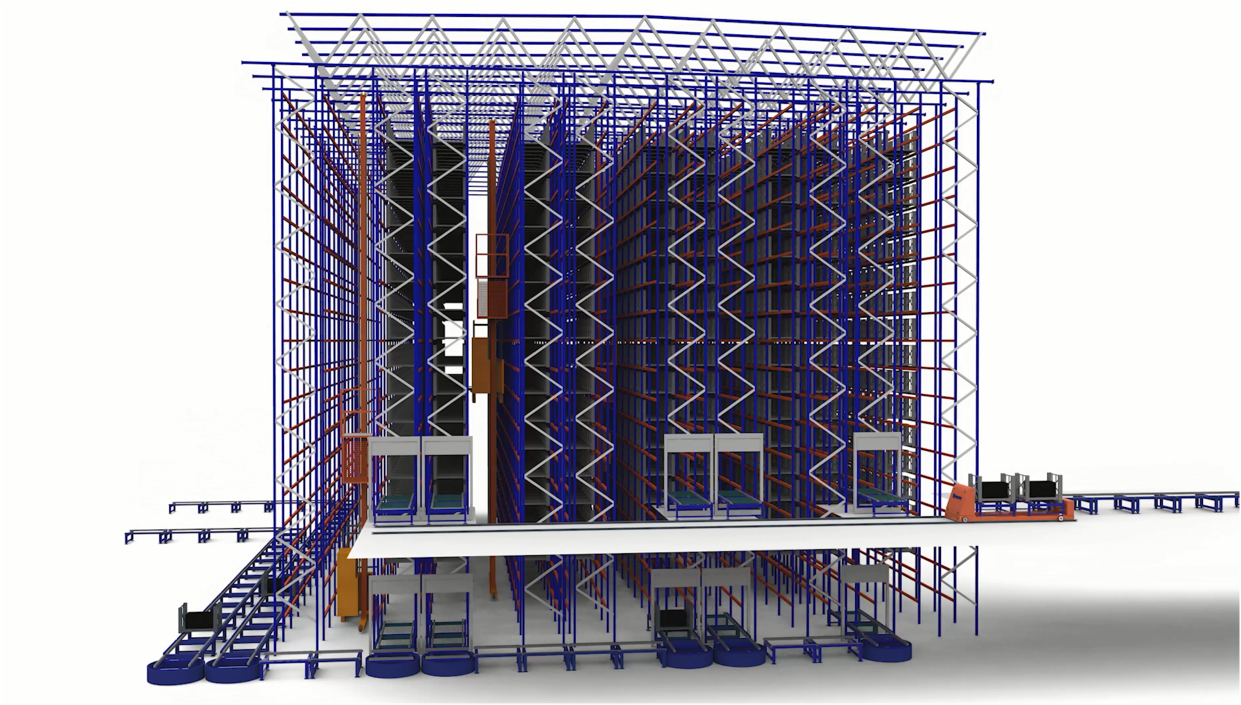 Automatinis aukštųjų stelažų krautuvas padėklams su padėklų mobiliąja platforma: Automatizuota kompaktiška padėklų saugykla